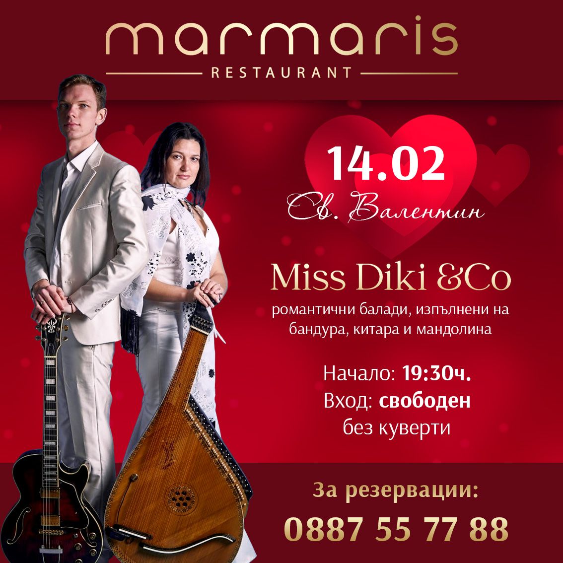 Св. Валентин с Miss Diki & Co – романтична вечер в ресторант Мармарис, Варна