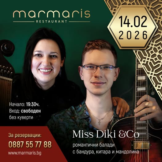 Св. Валентин с Miss Diki & Co – романтична вечер в ресторант Мармарис, Варна. Вход свободен.